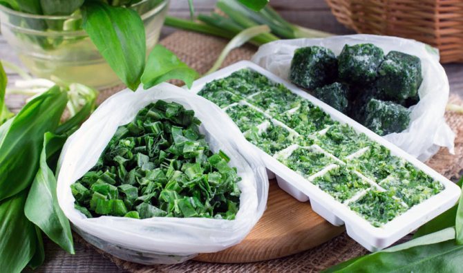 - Если для заморозки используются зип – пакеты, их заполняют черемшой на две трети. Затем максимально удаляют воздух при помощи скручивания. Герметично застегивают, и отправляют в морозильную камеру.