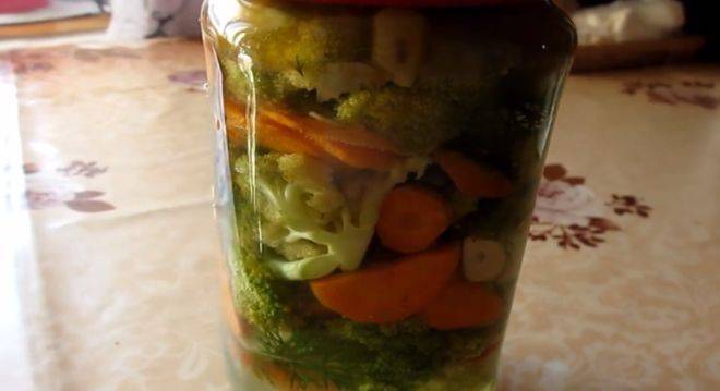 Наиболее вкусной брокколи будет, если её замариновать вместе с другими овощами. Особенностью данного рецепта являются различные специи, благодаря которым получается превосходный вкус блюда. Салат всегда выделяется на столе – он яркий, насыщенный.