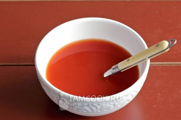 Приготовить томатный соус. Это может быть смесь готовых измельченных помидоров из банки или разведенная в 300 мл воды томатная паста. Посолить и добавить половину чайной ложки сахара (если паста кислая) для выравнивания вкуса.