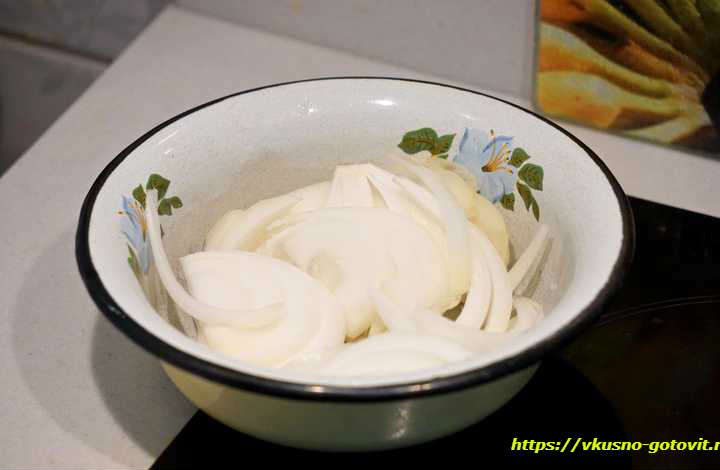 Луковицу порезать полукольцами.