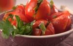 Помидоры сполосните и сделайте у них на противоположной от плодоножки стороне крестообразный надрез. Опустите томаты сначала на пару минут в кипящую воду, а затем ненадолго — в холодную. Снимите с помидоров кожицу и нарежьте мякоть не слишком большими кубиками.