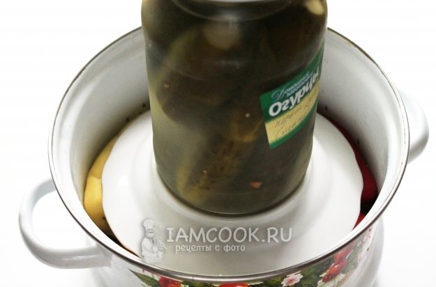 - В банку залить растительное масло и придавить блюдо прессом. Оставить на сутки.