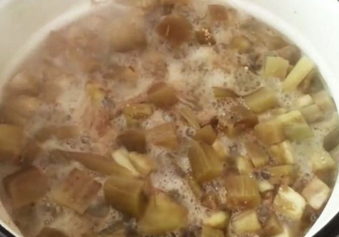 - После закипания желе, снизить интенсивность кипения до минимального, упарить на треть от первоначальной массы.