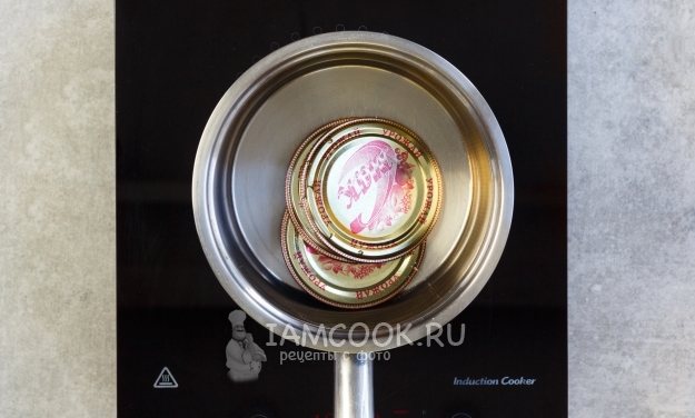 Опустите крышки для консервации в холодную воду, доведите воду до кипения и прокипятите 3 минуты.