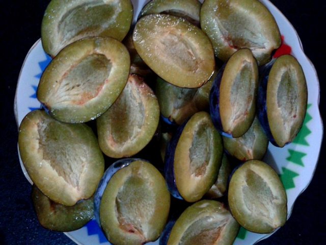 - Взять сливовые плоды, желательно, небольшого размера и крепкие, с плотной прочной шкуркой.