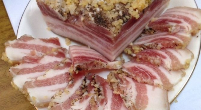Как засолить грудинку свиную с чесноком, очень пряный рецепт: