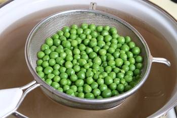 Зеленый горошек можно использовать, как в стручковом виде, так в виде зерен. Но тот и другой вариант следует предварительно подержать в кипятке 4 минуты.