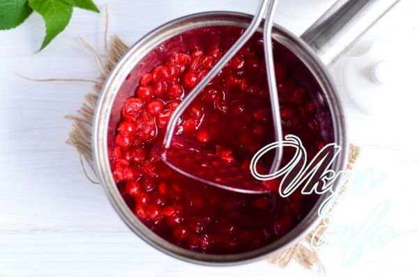 Чтобы ускорить процесс приготовления калины по этому рецепту, вы можете отжать сок через соковыжималку.