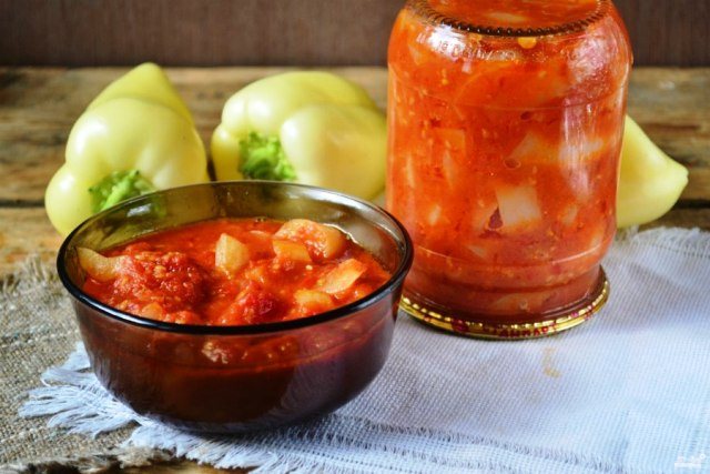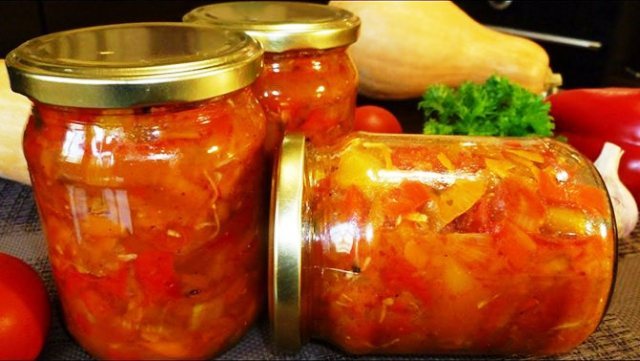 Лечо из болгарского перца, баклажанов, в томатном соке