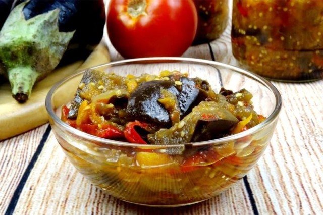Лечо с баклажанами, помидорами и перцем