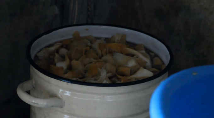 - Проведя процедуру по очистке и отвариванию грибов, их следует оставить на 20-30 мин, чтобы стекла жидкость.