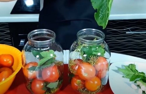 - Уложить помидоры в банку или банки (в зависимости от объема).