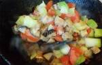 - Крупные томаты нарезаем дольками, кладем в эмалированную емкость, прикрываем крышкой и ставим на огонь. Овощи нагреваем до горячего, но не доводим до кипения. Мягкие овощи перетираем при помощи сита.