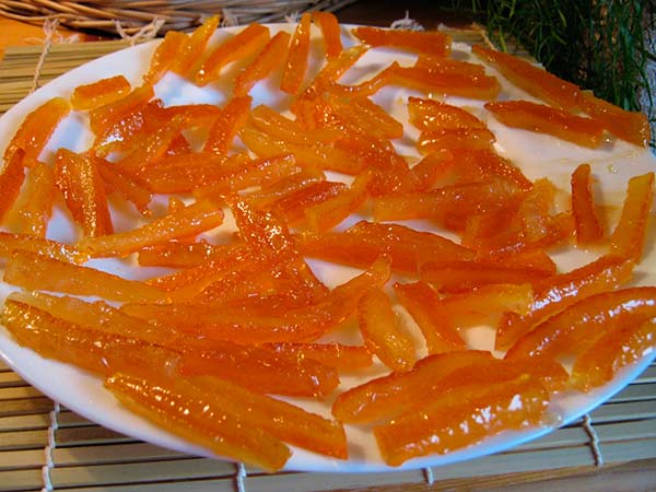 Изготавливать их могут двумя способами. Откидным, и тогда цукаты будут матовыми, ведь при сушке на них остается пленка от сиропа, в котором они варились. Глазированием, когда, например, «лимончики» будут с блестящей сладкой корочкой. Она формируется за счет того, что после окончания варки их снова окунают в сироп и только после этого просушивают в духовом шкафу при температурном режиме 450-500 градусов.