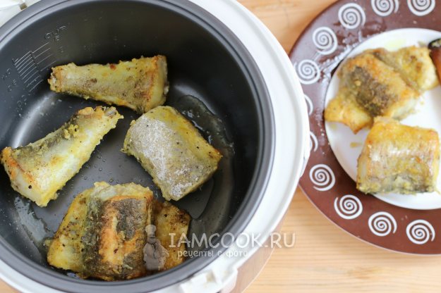 - Положите в масло куски рыбы. Обжаривайте их, не меняя программу, 10 минут.