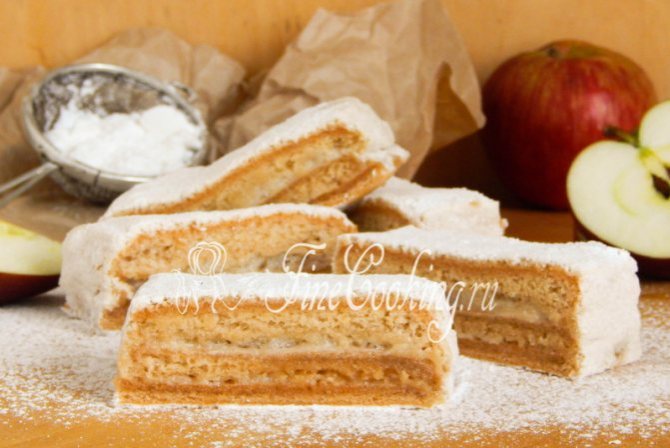 Помните, мы оставили примерно стакан взбитого с белком яблочного пюре — теперь он нам и нужен. Промазываем массой три пласта пастилы.