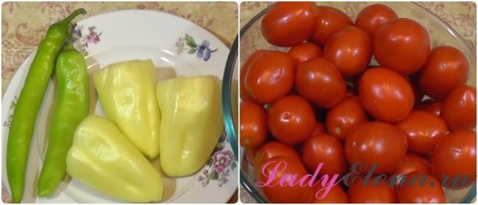 Еще один простой рецепт предлагает заготовить на зиму маринованные томаты с болгарским перцем. Вкус такая заготовка имеет сладкий и пикантный. Расчет компонентов дан на одну 3-х литровую емкость, маринад – на 1 л воды.