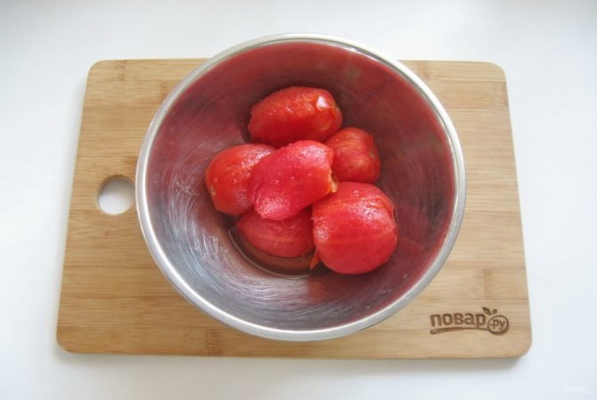 Способ приготовления: на тщательно вымытых плодах томатов сделать надрезы. Затем около получаса бланшировать их в кипящей водичке. Очищенный чесночок, болгарский и острый перчик, совместно с зеленью, измельчить при помощи блендера.
