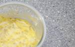 - По истечении времени яичную массу добавить к разбухшей манке. Сюда же влить уже остывшее растопленное масло. Все перемешать.