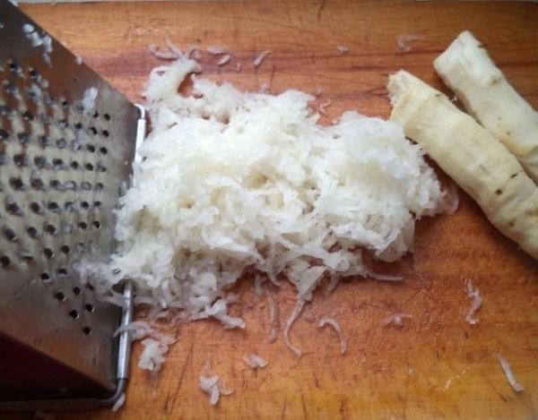 - Почистить корни и измельчить их любым способом (через мясорубку или на терке).