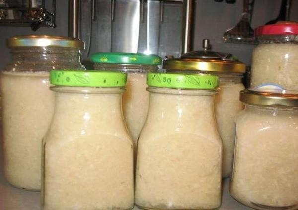Количество хрена на одну порцию составляет 1 кг в очищенном виде. Стерилизовать такую приправу не нужно, чтобы сохранить максимум полезных веществ.