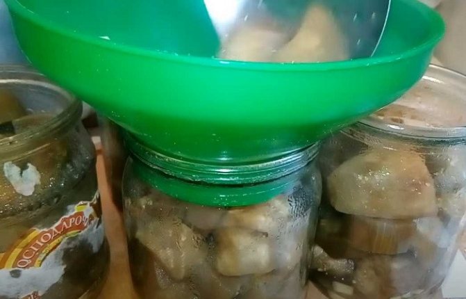 Предварительно нужно обязательно простерилизовать банки. Когда сварятся баклажаны, стеклотара уже должна быть стерильной.