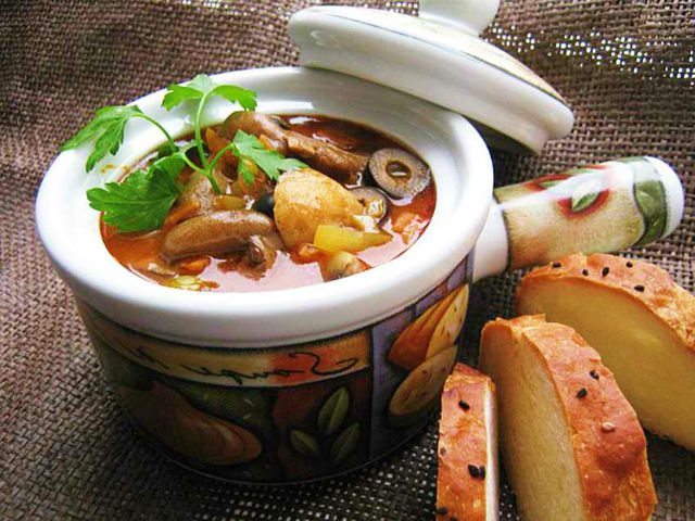 Этот рецепт отличается от предыдущих тем, что в нём совсем нет томатов. Но от этого солянка хуже не будет. Наоборот, в ней даже лучше чувствуется вкус грибов.