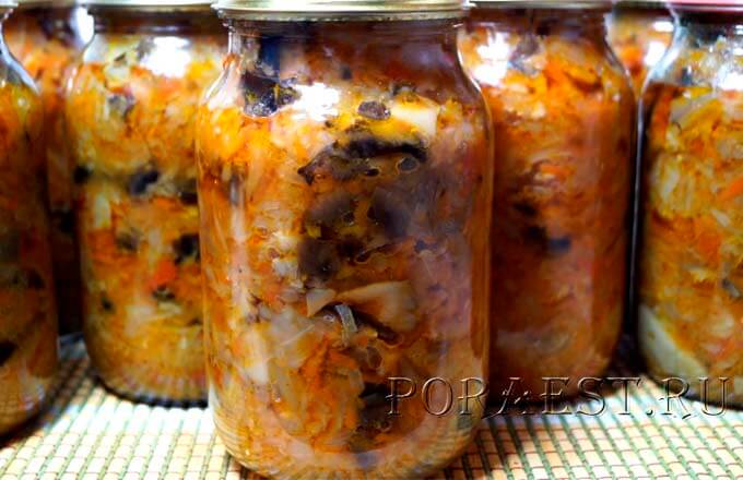 - Горячий салат раскладываем в банки, закатываем крышками, хорошо укутываем на сутки.