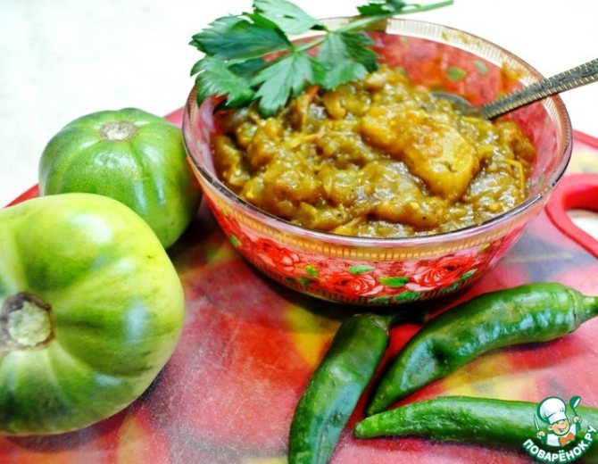 Рецепт острой аджики из зеленых помидор: