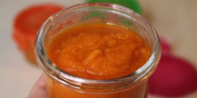 Приготовление. Тщательно вымойте морковь, очистите, нарежьте небольшими ломтиками и отварите до мягкости в течение 20-30 минут. Затем воду слейте, остудите морковь и измельчите ее с помощью блендера или в комбайне до состояния пюре. Готовое пюре разложите в подготовленные банки и закатайте. Или просто закройте крышками и храните в холодильнике.