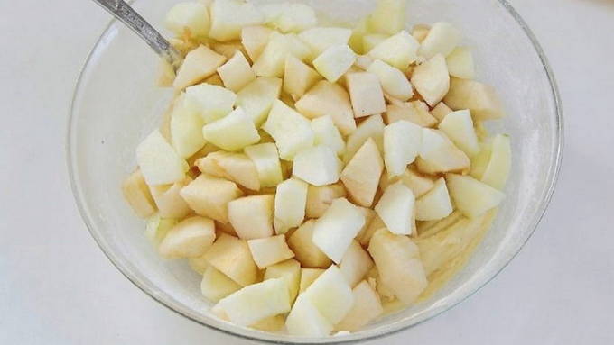 - Убираем хвостики, вырезаем сердцевину и нарезаем яблоки на небольшие кубики.