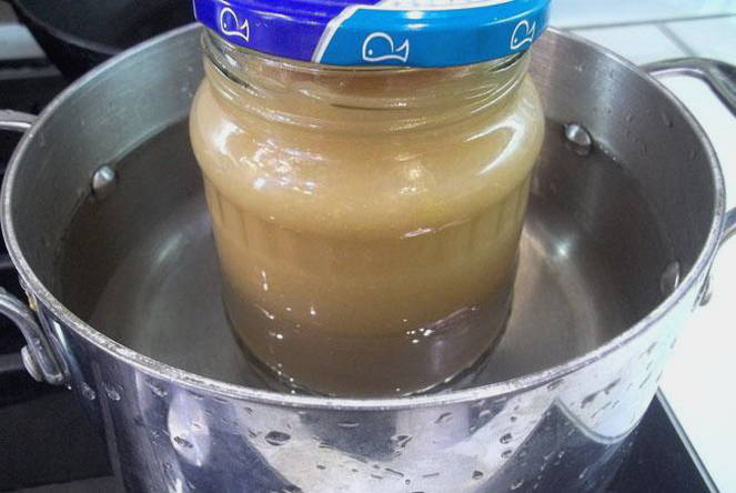 - Проваривают пюре из яблок на зиму дополнительно 10-15 мин., расфасовывают в стерильные банки, герметично укупоривают.