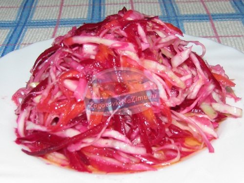 Один из традиционных зимних заготовок. Салат получается очень сытным, вкусным и ярким.