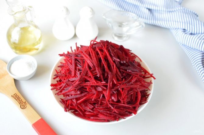 Форма нарезки свеклы и других овощей, а также некоторые особенности технологии могут зависеть от конкретного рецепта. Поэтому инструкцию по приготовлению нужно каждый раз внимательно изучать и не нарушать ее.