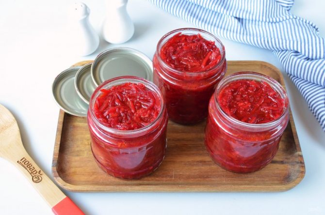 Этот рецепт свекольной закуски на зиму делают во многих российских семьях, так как она экономична и универсальна. Ее можно есть просто так, намазывать на хлеб, подавать как дополнение к гарниру, использовать в качестве заправки для борща.